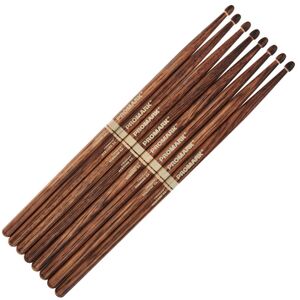 Pro Mark 5A Reb. H. FireGrain 4pcs Pack, Pack de 4 paires de baguettes, R5AFG Rebound 5A Hickory FireGrain, Olives en forme de gland, Longueur: 406,4 mm, Diamètre: 14,3 mm, Longueur des cols de 76 mm de sorte que le centre de gravité est plus proche de l'arrière des baguettes pour créer plus de rebond, Bois durci naturellement par flambage