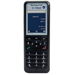 Installation spéciale téléphone sans-fil DECT Mitel Aastra Annuaire 200 contacts Écran TFT couleur 2" sur 7 lignes Résistant aux chutes sur béton Mains libres et prise casque 2,5 mm Bluetooth pour casque sans-fil Vibreur Carte microSD en option Technologie antimicrobienne BioCote Livré avec chargeur de bureau