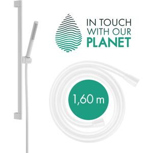 hansgrohe Pulsify ensemble de douche 24382700 1jet ÉcoSmart composé d'une douchette à main barre de douche Flexible de douche et support de douchette Taille du pommeau de douche 98 x 24 mm Type de jet PowderRain Flexible de douche avec écrou conique des deux côtés Pivotant côté douche pour éviter une torsion gênante du flexible de douche Montage mural à vis Supports muraux en plastique Support de douchette réglable en hauteur avec curseur poussoir Support de douchette à main en plastique/métal