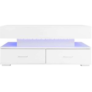 Table basse blanche moderne verre trempé avec éclairage LED 100x50x35cm SCRIENCette table basse moderne et élégante, de couleur blanche brillante, s'intègre parfaitement dans tout style d'intérieur grâce à ses dimensions idéales de 100 x 50 x 35 cm. Elle combine fonctionnalité et esthétique, offrant une atmosphère unique et un espace de rangement pratique. Design Creux Élégant : Le design creux avec plateau supérieur en verre trempé crée une sensation d'ouverture et permet de visualiser facilement les objets rangés.Éclairage LED Personnalisable : Contrôle via application mobile ou télécommande avec plus de 60 000 couleurs et plusieurs modes DIY pour une ambiance parfaite.Rangement Spacieux : La conception à double niveau offre un grand espace pour organiser magazines, livres, télécommandes et autres accessoires de salon.Construction Robuste et Durable : Fabriquée en panneau de particules de haute qualité, cette table peut supporter jusqu'à 30 kg, garantissant une utilisation durable.Surface Brillante Facile à Nettoyer : Le revêtement haute brillance sur le dessus facilite l'entretien et ajoute une touche de modernité. Caractéristiques :Matériau : Panneau de particules, Verre trempéDimensions du produit :100 x 50 x 35 cm (L x P x H)Dimensions du colis :72.39 x 60.96 x 20.32 cmPoids net/brut :25.25 kgs / 27.25 kgs Remarque :Le produit sera envoyé depuis dépôt en Allemagne, la livraison prendra environ 7-10 jours ouvrés pour recevoir. Veuillez mesurer votre espace et la taille avant d'acheter. Merci pour votre compréhension!