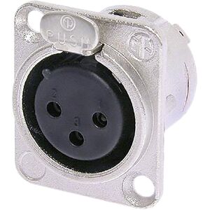 Embase XLR femelle: Embase métallique robuste, au gabarit D, Découpe panneau standard (format D) 24 mm, Existe en version 3 à 7 points, avec coupelles à souder, Embase métallique robuste, au format D, Découpe panneau standard (format D) 24 mm, Avec coupelles à souder, Classe de protection: IP40, Sexe: féminin, Fiche 3 points, cuvettes à souder, corps nickelé, contacts plaqués argent Embase métallique format D pour montage dans panneau Composant à la norme UL. Données techniques: Type de produit: Connecteurs, Type: Connecteurs XLR, Nombre de points: 3, Sexe: femelle, Contacts: argenté, Courant nominal par contact: 16 A, Tension nominale: , Mode de connexion: Contacts par soudure, Température d'utilisation: 80 - -30 °C, Boîtier: Fonte de zinc, Forme du châssis: D, Largeur: 26 mm, Hauteur (mm): 31 mm, Profondeur: 24 mm, Classe d'inflammabilité: UL 94 HB, Classe IP: IP40, Compatibilité des normes: IEC 61076-2-103, Poids: 0,012 kg, Informations complémentaires: dans boîtier Type D