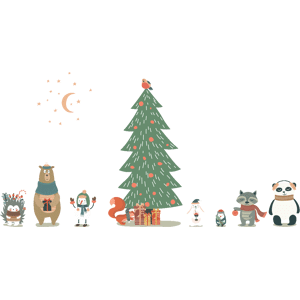 Des stickers Noël pour votre déco ! Avec les stickers muraux Noël multicolore et ce Stickers Noël animaux enchantés, vous pourrez enfin décorer l'intérieur de votre appartement ou maison dans l'esprit de Noël ! Dimensions des stickers Noël: Ce sticker Noël se compose du sapin, raton laveur, hérisso