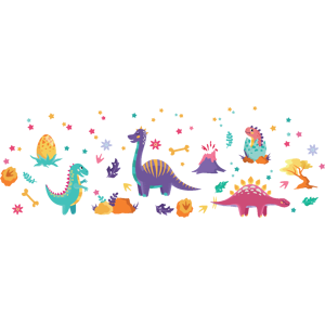 Des stickers dinosaures pour votre déco ! Avec les stickers muraux dinosaures et ce Stickers animaux dinosaures dans la nature, vous vous approprierez enfin votre intérieur ! Dimensions des stickers enfants : La planche de H60 x L90 cm, le grand sticker dinosaure mesure H45 cm x L50 cm – le sticker
