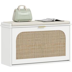 Description:Découvrez le banc à chaussures HOMCOM pour une entrée ordonnée. Avec sa porte rabattable et ses deux étagères, il simplifie le rangement des chaussures. Son coussin épais et le tissu respirant aspect lin offrent confort et propreté. La porte en rotin ajoute une touche bohème, créant une ambiance chaleureuse.caractéristique:● Porte d'inspiration bohème avec accents en rotin, ajoute un style unique à votre entrée; ● Coussin épais en rembourrage mousse enveloppé dans un tissu aspect lin, offre une assise confortable pour changer de chaussures; ● Ce banc d'entrée avec un tiroir rabattable peut contenir jusqu'à huit paires de chaussures de manière ordonnée; ● Étagère réglable sur deux niveaux qui convient à des bottes, talons ou baskets pour un rangement flexible; ● Banc de rangement en MDF et panneau de particules, supporte jusqu'à 140 kg; ● Banc à chaussures compact qui convient aux petits espaces d'entrée, idéale pour maximiser un espace limité; ● Housse de coussin amovible et lavable, facile à nettoyer et à entretenir; ● Montage nécessaire;Spécification:● Couleurs : blanc, beige; ● Matériaux : MDF, panneau de particules, tissu aspect lin (100 % polyester), rembourrage mousse; ● Dimensions totales : 80l x 26P x 47,5H cm; ● Dimensions de l'assise : 74,5l x 24P x 44,5H cm; ● Épaisseur du coussin : 4 cm; ● Dimensions intérieures du tiroir : 74l x 38P x 31H cm; ● Capacité de chaussures : 8 paires; ● Taille max. de chaussure : EU 43; ● Charge max. recommandée : 140 kg (total), 120 kg (assise), 10 kg (tiroir); ● Réf. : 837-600V00WT;contenu du colis:● 1 x Banc à Chaussures; ● 1 x Coussin; ● 1 x Manuel;
