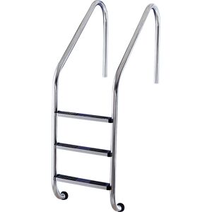 Echelle Inox standard Livrée avec tampons inférieurs en caoutchouc, ancrages en polypropylène (mise à la terre) et enjoliveurs. Matériau Inox poli AISI 304 Marches Inox anti-dérapantes largeur 500 mm Tubulures diamètre 43 x 1,2mmâ ‹ Finition polissage brillant Compatible avec les piscines enterrées Garantie légale de conformité et des vices cachés : 2 ans Non garanti en cas d’utilisation avec électrolyse au sel