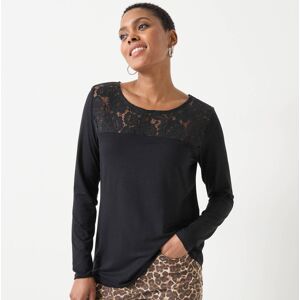 Blancheporte T-shirt Col Rond Manches Courtes Uni Coton - Femme Noir 52