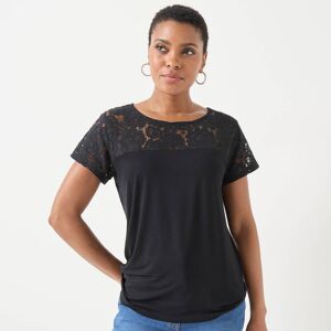 Taille• Longueur 66 cm environComposition• Uni : jersey 95% viscose, 5% élasthanne• Chiné : jersey 65% polyester, 30% viscose, 5% élasthanneDescription• Maille douce et fluide• Empiècement en dentelle devant• Col rond• Manches courtes en dentelle• Base droiteBlancheporte sʼengage• Ce produit est labellisé OEKO-TEX® STANDARD 100 (n° CQ 1216 / 3 IFTH). Ce label contribue à une sécurité du produit élevée, avec des critères de test stricts, au-delà des exigences réglementaires en vigueur sur le plan national et européen.