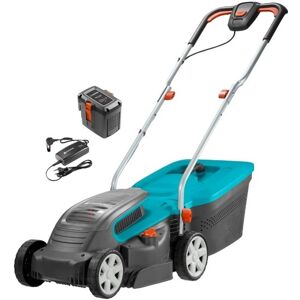 Tondeuse a gazon sans fil, idéale pour tondre les petites pelouses • La tondeuse a gazon sur batterie PowerMax Li-40/32 est légere et parfaite pour tondre les pelouses de petite taille jusqu'a 280 m2 environ • Elle est équipée d’un moteur sans balai performant, d’une lame affutée avec précision pour des résultats de coupe excellents et d’une poignée ErgoTec ergonomique qui rend la tondeuse a gazon extremement facile a pousser • La fonction "QuickFit" permet un réglage centralisé de la hauteur de coupe : 10 palliers de 20 a 60 mm • Le systeme CnC (Cut&Collect) permet de récupérer facilement l'herbe coupée dans le bac collecteur d'une contenance de 30 L • La poignée est repliable afin de pouvoir transporter facilement la tondeuse a gazon et de la stocker sans difficulté et sans perte de place • Livrée avec sa batterie BLi-10/100 40 V* / 2,6 Ah et son chargeur de batterie • La batterie interchangeable peut etre utilisée sur d’autres produits de la gamme HeartBeat System 40 V GARDENA Caractéristiques techniques • Capacité de la batterie : 2.6 Ah • Tension de la batterie : 40 V • Largeur de coupe : 32 cm • Contenance du bac de ramassage : 30 l • Hauteur de coupe, mini-maxi min : 20 mm • Hauteur de coupe, mini-maxi max : 60 mm • Nombre de paliers de réglage de la hauteur de coupe : 10 • Réglage de la hauteur de coupe : Centralisé • Surface de tonte max. : 280 m2 • Poids avec la batterie : 9.1 kg>