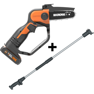 Activation à batterie, Poignée à une main, Pays de fabrication Chine, Configuration de l'élagueuse sur perche / manuelle, Équipement avec batterie, Configuration Sur perche, Tige de rallonge- longueur 125 cm, Type de moteur à batterie, Type de batterie lithium (Li-Ion), Ampères batterie 2Ah, Nombre de batteries 1, Ampères disponibles 2Ah, Longueur de la lame 12cm, Type de lame standard, Pas de chaîne 1/4'', Lubrification du dispositif de coupe Sans lubrification, Ø Branche - Max 100mm, Tendeur de chaîne rapide, Bouton rotatif démontage rapide guide/chaîne, Batterie partagée multi-outils, Démontage rapide chaîne, Poids 2kg