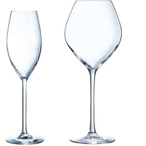 Ensemble composé de 12 verres en cristallin : - 6 Verres à vin 47cl- 6 Flutes à champagne 24clProduits conçus et fabriqués en France.Cheer Up est une collection de verres à pied à paraison anguleuse, conçue pour déguster les meilleurs crus. Grâce à sa large surface d'oxygènation, le modèle permet de restituer toute la subtilité des arômes et du goût des vins ronds et fruités.