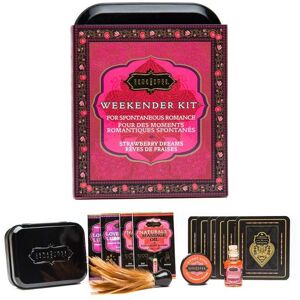 Exprimez votre amour passionnément peu importe le lieu où vous vous trouvez avec ce Coffret de Voyage Getaway de Kama Sutra. Ce coffret très discret contient tout un attirail de produits érotiques, parfait pour une soirée romantique. Ce joli coffret vous accompagnera de partout dans tous vos voyages. Facile et pratique à transporter vous l'aurez toujours avec vous pour passer une soirée exceptionnelle avec votre amoureux. Le Coffret de Voyage Getaway contient : * 1 Huile de Massage Oil of Love Vanilla Crème stimulante et excitante cette huile décuplera vos envies (22 ml) * 1 Lubrifiant Love Liquid à base d'eau pour humidifier toutes les zones intimes et vous permettre de jouer encore et encore (30 ml) * 1 Sels de Bain Treasures of the Sea, versez les dans l’eau chaude de votre baignoire et détendez-vous… (50 g) * 1 poudre corporelle Honey Dust Vanilla Crème, livrée avec son petit plumeau, cette poudre sera un appel à la séduction et à la tentation (3,5 g) * 1 bougie d'ambiance Kama Sutra, elle créera une ambiance romantique propice à tous les plaisirs * 1 Trousse de Voyage pour ranger vos produits et les emmener avec vous dans toutes vos aventures ! Le coffret de voyage Getaway Kit est idéal pour partir à l'aventure sans en oublier son kit érotique. Au milieu de la foret Amazonienne, dans un hôtel entre deux rendez-vous, ou même chez soi, le kit Getaway aura toujours son utilité ! Produits testés sous contrôle dermatologique.