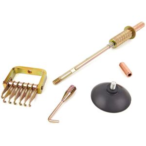 Redresser des tôles nécessite les bons outils, comme ce kit complet d’accessoires compacts mais indispensables. Il comprend plusieurs outils pour éliminer rapidement et en sécurité de petites bosses sur des tôles, par exemple de carrosserie. Les crochets à l’extrémité offrent plus d’appui et de grip sur la zone à redresser, tandis que la ventouse assure le contrôle de la pièce. Fonctionnant sans compresseur, ce kit s’utilise presque partout, sans tuyaux encombrants.