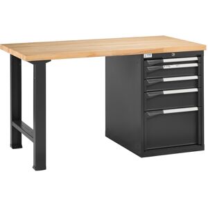 Etabli professionnel sur caisson métallique 5 tiroirs et plateau 2500 mm : > Plateau bois lamellé-collé hêtre, poncé 2 faces Longueur 2500 mm épaisseur 40 mm, largeur 750 mm. Charge maxi plateau 500 kg. > Pied coloris gris anthracite Ral 7016 > Bloc Novalp 5 tiroirs BN700 (dimensions H. 800 - P. 726 l. 566 mm), gris anthracite Ral 7016 1 tiroir hauteur 50 mm + 2 tiroirs hauteur 100 mm + 1 tiroir hauteur 150 mm +1 tiroir hauteur 300 mm &