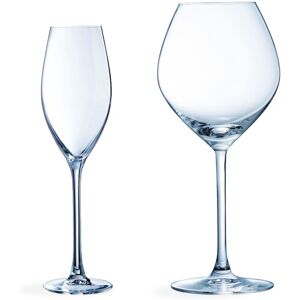 Ensemble composé de 12 verres en cristallin : - 6 Verres à vin 55cl- 6 Flutes à champagne 24clProduits conçus et fabriqués en France.Cheer Up est une collection de verres à pied à paraison anguleuse, conçue pour déguster les meilleurs crus. Grâce à sa large surface d'oxygènation, le modèle permet de restituer toute la subtilité des arômes et du goût des vins ronds et fruités.