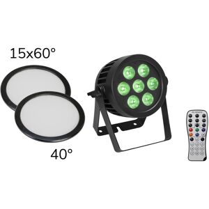 Projecteur résistant aux intempéries avec 7 LED SCL et mélange de couleurs RGBA/CW/WW+UV, 2 filtres givrés inclus EUROLITE LED IP PAR 7x9W SCL Spot Projecteur étanche (IP65) avec 7 LED de 9 W et mélange de couleurs 7 en 1 SCL RGB/CW/WW/A/UV 7 LED puissantes 9 W haute puissance 7 en 1 SCL RGB/CW/WW/A/UV (mélange homogène des couleurs), Mélange de couleurs en continu, changement de couleur réglable, fondu de couleurs réglable, variateur électronique, Effet stroboscopique, Sélection directe de 28 couleurs prédéfinies, L'appareil est refroidi par convection passive., Contrôle via DMX, autonome, télécommande IR, Sans scintillement, Avec un angle de faisceau de 15°, Avec double support, écran LCD, Convient pour une utilisation en extérieur IP65, Fonctionnement silencieux, Préprogrammé dans LED PC-Control 512, EASY SHOW 1, Light Captain, EASY SHOW 2, EASY SHOW 3, Entrée et sortie secteur pour le raccordement électrique de 8 unités maximum, Pour des domaines d'application tels que: Installation, scène, location, architecture, Possibilités d'utilisation: debout, suspendu, sur pied, Contenu de l'emballage 1 x projecteur, 1 x cordon d'alimentation, 1 x télécommande, 1 x pile, 1 x manuel d'utilisation, Couvercle diffuseur EUROLITE 15x60° pour IP PAR-7 Contenu de l'emballage 1 x façonneur de faisceau, Couvercle diffuseur EUROLITE 40° pour IP PAR-7 Avec un angle de faisceau de 40°, Contenu de l'emballage 1 x filtre anti-givre, Poids: 4,27 kg, EUROLITE LED IP PAR 7x9W SCL Spot, Alimentation électrique: 100-240 V CA, 50/60 Hz, Consommation électrique: 55 W, Classification IP: IP65, Connexion électrique: Alimentation secteur via IP T-Con (M) cordon d'alimentation avec fiche de sécurité, Puissance de sortie: IP T-Con (F) version à montage, Type de lampe: lampe LED, Type de LED: 7 x 9 W haute puissance 7 en 1 SCL RGB/CW/WW/A/UV (mélange homogène des couleurs), Fréquence de flash: 0 à 20 Hz, Canaux DMX: 3, 5, 7, 9, 13, Entrée DMX: 1 x XLR 3 broches (M) version à montage IP, Sortie DMX: 1 x XLR 3 broches (F) version à montage IP, Refroidissement: Refroidissement par convection passive, Contrôle: DMX, autonome, télécommande IR, Préprogrammé dans: LED PC-Control 512, EASY SHOW 1, Light Captain, EASY SHOW 2, EASY SHOW 3, Projection: Sans scintillement, Angle du faisceau: 15°, Angle du faisceau (1/2 crête): 15°, Couleur du boîtier: Noir mat, Système de fixation: Double crochet, Type d'affichage: écran LCD, Matériau: Moulage en aluminium, Dimensions: Largeur: 25,5 cmProfondeur: 15,3 cmHauteur: 28,1 cm, Poids: 4,07 kg, Classification du bruit: Classe 0 (aucun bruit), Sécurité photobiologique: Groupe de risque 0, Support de montage, Diamètre des trous de montage: 3 x Ø11 mm, Matériau: Métal, 2,5 mm, Cordon d'alimentation, Construction du câble: 3 x 1,0 mm² H05RN-F, Longueur du câble: Environ 1,2 m, Télécommande, Batterie: 1 pile bouton 3,0 V CR2025 au lithium-manganèse intégrée, Spécifications légales, Produit spécial: Non conçu pour l'éclairage domestique, Utilisation...