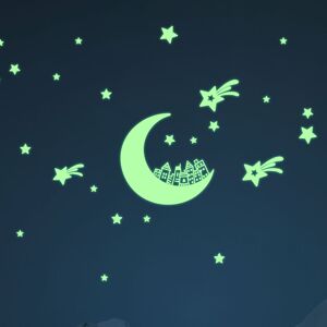 Des stickers phosphorescent VERT pour votre déco ! Avec les stickers muraux phosphorescent VERT et ce Stickers phosphorescents ville au clair de lune, vous pourrez enfin décorer l'intérieur de votre chambre à votre guise ! Ce sticker phosphorescent doit être exposé à la lumière pendant 1h pour pouv