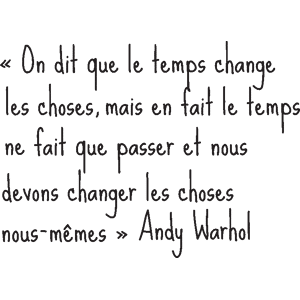 Des stickers citations muraux pour la décoration ! Avec les stickers muraux pour la déco et ce sticker “On dit que le temps change les choses, mais en fait le temps ne fait que passer et nous devons changer les choses nous-mêmes.” Andy Warhol , vous pourrez enfin décorer l'intérieur de votre maison