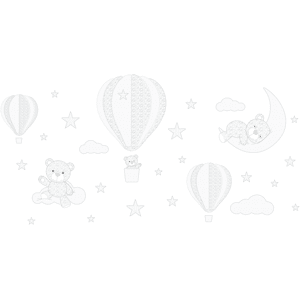 Des stickers animaux pour votre déco ! Avec les stickers muraux animaux multicolore et ce Stickers montgolfières et oursons dans les nuages, vous vous approprierez enfin votre intérieur ! Dimension du sticker : La planche de 40 x 55 cm, le petit sticker étoile mesure 2,5 x 2,5 cm - le grand sticker