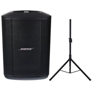"Bose S1 Pro Plus Stand Bundle@+*Offre Bundle comprenant*, Bose S1 Pro Plus@+*Système de sonorisation sans fil actif*, Utilisable comme retour de scène, amplificateur d'entraînement ou sono principale, 1 haut-parleur grave 6"" & 3 moteurs à compression 2,25"", Bose S1 Pro Plus Battery Pack - batterie lithium-ion rechargeable pour Bose S1 Pro Plus incl., Autonomie jusqu'à 11 heures, Avec fonction de charge rapide, 4 options de positionnement, Mixeur 3 canaux intégré avec écran OLED, contrôle de la réverbération et EQ pour les graves et les aigus, Bluetooth, ToneMatch, Streaming Bluetooth avec appairage à une touche, Contrôle audio via l'application Bose Music, Réponse en fréquence: 62 - 17 000 Hz, Angle de dispersion (H x V): 120° x 50°, SPL max.: 103 dB, 109 dB crête, Convient pour la sonorisation jusqu'à 50 personnes, Entrées: 2x prise combinée XLR/Jack 6,3 mm, 1x Jack 6,3 mm, 1x mini Jack 3,5 mm, Sortie: 1x XLR, Admission de 35 mm pour montage sur pied, Dimensions (L x H x P): 238 x 332 x 279 mm, Poids: 6,5 kg, Couleur: Noir, Câble d'alimentation incl., Emetteur HF sans fil adapté pour instruments #566838# ou microphone #566836# optionnel non fourni, Sac de transport adapté #432460#, #484091#, #471699# ou #441140# optionnel non fourni, Housse de protection adaptée #460174# ou #432462# optionnelle non fournie, Flight case adapté #506013# ou #506016# optionnel non fourni, Roadworx Slim Line Speaker Stand@+*Pied d'enceinte*, Supporte une charge centrée max. de 40 kg, Longueur env. 1 m à 1,70 m, Diamètre du tube: 35 mm, Poids: 3,15 kg, Couleur: Noir"