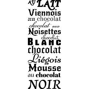 Des stickers cuisine pour votre déco ! Avec ce stickers pour la cuisine représentant des Variétés de chocolats vous pourrez décorer votre intérieur de manière originale et _qualificatif_ ! Vous allez pouvoir donner une nouvelle vie à cette pièce si fréquemment utilisée ! Choisissez une décoration o