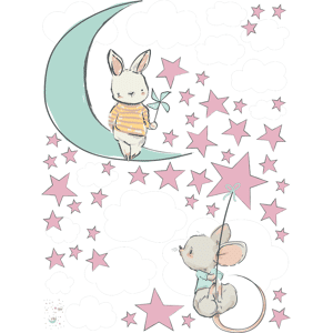 Des stickers animaux pour votre déco ! Avec les stickers muraux animaux multicolore et ce Stickers lapin et souris à la découverte des étoiles, vous vous approprierez enfin votre intérieur ! Dimension du sticker : La planche de H80 x L60 cm, le sticker lapin et la lune mesurent H35,5 x L30,5 cm – l