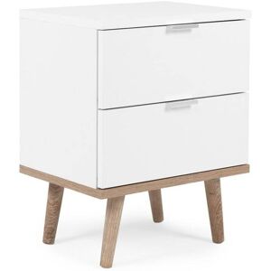 Caractéristiques produit: Chevet 2 tiroirs. Couleur Blanc / chêne sonoma. Réalisé en Panneaux de particules, panneaux de fibres haute densité et MDF. Fabriqué en Europe (Pologne). Dimensions produits: Longueur 40 cm x Hauteur 51,9 cm x Largeur 30 cm. Dimensions colis : Largeur 61 cm x Longueur 41,5 cm x Profondeur 14,5 cm - Poids brut : 10,1 kg.