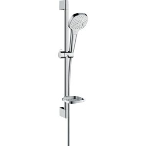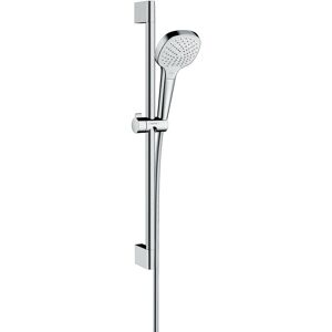 hansgrohe Croma Select E Vario Numéro d'article : 26413400 se compose de: douche à main, support de douche, tuyau de douche Taille de la pomme de douche: 110 mm Forme de pomme de douche: angulaire Grande douche avec distribution d'eau optimale (performance XXL) 3 types de pulvérisation: Rain, IntenseRain, TurboRain Changement de Select pratique Select bouton Select débit maximum (à 3 bar): 15 l / min élimination sans effort des dépôts de calcaire en essuyant doucement (QuickClean) Surface: blanc / chrome pivotant côté douche contre la torsion gênante du tuyau de douche Tuyau de douche résistant aux plis, flexible et facile à nettoyer Longueur du tuyau de douche: 1600 mm support mural en plastique chromé
