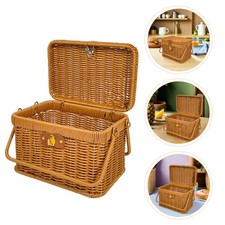NONE Panier en osier Imitation rotin tissé à la main, boîte de rangement rectangulaire, panier à pain pour fruits, thé, collation, cosmétiques, fournitures de cuisine pour la maison