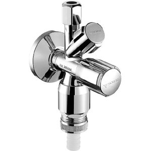 Schell Comfort vanne d'angle combinée 035490699 Numéro d'article 035490699 chromé surface0 filetage de connexion auto-obturant Vanne de raccordement d'appareil avec clapet anti-retour et aérateur de tube droit Arbre de poussée long et rosace de poussée 54mm Raccord à vis pour tuyau