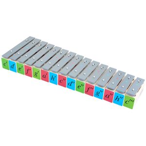 Sonor KS40L15 Chime Bars Set, Lames Chime, Tessiture: Do1 à Do3, Instructions fournies (allemand), 15 lames, Gamme majeure, Matériau: métal, Alliage spécial, Couleur: gris, Largeur: 40 mm, Épaisseur: 6 mm, Accord fondamental, Résonateur résistant en Resophen, Couleur: blanc, Maillets inclus: 8 paires SCH 5, Type ténor/alto