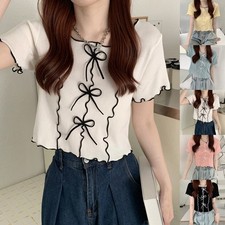 T-shirt à nœud noir scintillant pour femme – Manches courtes, col rond décontracté, détail en strass, idéal pour toutes les saisons