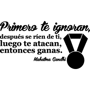 Des stickers muraux citations pour la déco ! Avec les stickers citation et ce Sticker citation primero te ignoran (Mahatma Gandhi), vous pourrez enfin décorer l'intérieur de votre cuisine à votre guise avec leur aide ! Ce sticker Primero te ignoran, despues se rien de ti, luego te atacan, entonces