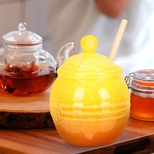 NONE Pot à miel avec couvercle en bois, réservoir scellé en verre, tige de mélange, bâtons de trempage en bois, pot Transparent scellé pour la maison, rangement de cuisine, 1/3/5 pièces