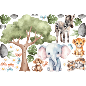 Des stickers animaux pour votre déco ! Avec les stickers muraux animaux multicolore et ce Stickers aquarelles animaux africains, vous vous approprierez enfin votre intérieur ! Dimensions des stickers animaux : Ce sticker déco chambre enfant se compose de : 1 sticker éléphant, 1 sticker singe, 1 sti