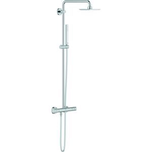 Grohe Euphoria 152 système de douche 27932000 Système de douche avec mitigeur thermostatique pour montage mural composé de: bras de douche pivotant horizontalement de 450 mm Thermostat exposé avec fonction aquadimmer vous permet de basculer entre: Euphoria Cube 152 douche de tête ( Euphoria Cube ) Type de jet: Pluie avec angle de rotation de la rotule ± 12 ° Euphoria Cube ( Euphoria Cube ) réglable en hauteur au moyen d'un élément coulissant 2000 Silverflex match4 2000 mm ( 2000 ) GROHE EcoJoy stabilisateur de débit 9,5 l / min Cartouche compacte GROHE TurboStat avec thermocouple d'expansion Verrou de sécurité GROHE SafeStop à 38 ° C Verrou de sécurité GROHE SafeStop Plus à 38 ° C et butée de température en option à 43 ° C GROHE DreamSpray modèle de pulvérisation parfait Surface GROHE StarLight Système anticalcaire SpeedClean Sans torsion contre la torsion du tuyau de douche adapté pour Chauffe-eau partir de 18 kW / h Débit minimum 7 l / min Accessoires en option: étagère GROHE EasyReach (26 362)
