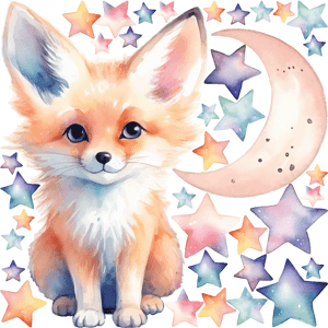 Des stickers animaux pour votre déco ! Avec les stickers muraux animaux multicolore et ce Sticker animal renard dans les étoiles aquarelle, vous vous approprierez enfin votre intérieur ! Dimensions des stickers animaux : Ce sticker déco chambre enfant se compose de : 1 sticker renard, 1 sticker lun