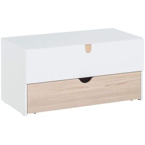 Notre commode 2 tiroirs Stige permets de ranger facilement vos affaires dans n'importe quelle pièce de votre maison. Grâce aux différents meubles de la collection, composer votre meuble de rangement idéal selon vos besoins. Disponible en plusieurs couleurs, vous pourrez accorder vos meubles au style de votre pièce.Caractéristiques produit:Les tiroirs sont équipés de coulisses à billes de haute qualité, avec amortisseurs de fermetureLe tiroir du bas est équipé de 4 roulettes.Ainsi, ce tiroir peut être sorti complètement du meuble pour faciliter l'accès ou son remplissageFabriquée en panneaux de particules mélaminés + poignées en bois massifExiste en couleur Taupe et décor pin ou Blanc et décor PinDimensions produit:Longueur 94 cm x Largeur 47 cm x Hauteur 49 cm - Poids net: 31,450 kgDimensions colis :Colis n°1: Longueur 124,5 cm x Largeur 56,5 cm x Hauteur 8 cm - Poids brut : 23,2 kgColis n°2: Longueur 99,5 cm x Largeur 52 cm x Hauteur 6 cm - Poids brut : 13,2 kgLa collection STIGE propose des meubles au design intemporel et fonctionnel. Les mélanges de couleur associés au naturel du Pin massif offre un style moderne et à la fois naturel à cette collection.