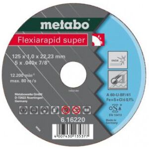 • Le disque superfin à hautes performances spécialement conçu pour le traitement de l'acier inoxydable • Performances de coupe maximales avec une très longue durée de vie grâce à l'utilisation de corindons spéciaux • Exempt de fer, de soufre et de chlore (Fe + S + Cl ≤ 0,1 %) • Pour tous les aciers résistant à la rouille et aux acides (V2A, Nirosta, INOX), les aciers à ressort, les aciers à outils • Utilisable dans la construction de véhicules, de conteneurs, de carrosseries de voitures, d'armoires électriques, etc. • Disques de coupe pour une coupe silencieuse, sans bavures et préciseLes Caractéristiques techniques • Exécution: déportée • Vitesse de rotation max.: 12 200 tr/min • Classe de qualité: A 60-U • Diamètre x épaisseur x forure: 125 x 0,8 x 22,23 mm>