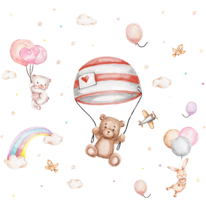 Des stickers animaux pour votre déco ! Avec les stickers muraux animaux multicolore et ce Stickers animaux volants ours en parachute, vous vous approprierez enfin votre intérieur ! Dimensions des stickers animaux : Ce sticker déco chambre enfant se compose de : 1 sticker ourson en parachute, 1 stic