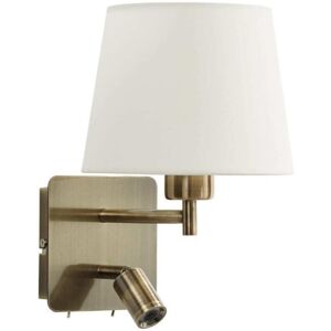 Cette applique liseuse tête de lit s'adapte à tous les styles avec son applique laiton patiné en métal et son abat-jour crème. L'applique murale originale est équipée d'une liseuse LED qui pivote sur son axe pour offrir un confort de lecture incomparable. Classe II et IP20 Composant LED inclus - Ampoule E27 non incluse, à choisir en 20W max. Jolie applique tête de lit en métal couleur laiton patiné qui propose un abat-jour en coton couleur crème pour protéger une ampoule (non fournie - à choisir de préférence en LED E27 de 20W max.). Cette applique murale contemporaine propose également une liseuse LED rotative sur son axe pour diffuser sa belle lumière dans les tons blancs chaud médium ( 145 lumens pour 3000K) Contemporaine par ses couleurs laiton patiné et blanc cassé, votre applique liseuse s'intégrera bien dans une ambiance moderne. Magnifique en éclairage de lit dans une chambre parentale qui joue la sobriété, l'applique murale est équipée de 2 interrupteurs distincts situés sous le socle. Ce luminaire est classe II pour les normes hôtelières. Caractéristiques techniques de l'applique tête de lit : Hauteur : 26,1 cm Profondeur : 23.9 cm Largeur : 18 cm Applique murale pour tête de lit composée d'une structure métal couleur laiton patiné, surmontée d'un abat-jour conique en coton écru. La structure propose une point lumineux central pour ampoule E27 max. 20 W (non fournie, à choisir en LED E27 de préférence) ainsi qu'une liseuse LED de 3,5W pour 145 lumen - 3000 K (blanc chaud moyen) avec tête rotative. Led CREE changeable. Chaque point lumineux dispose d'un interrupteur indépendant en façade. IP20 - Classe II Garantie 2 ans.