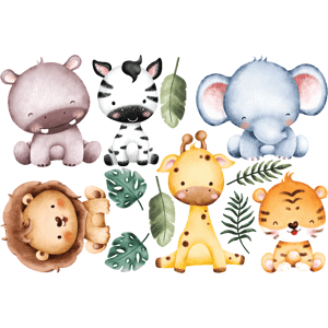 Des stickers animaux pour votre déco ! Avec les stickers muraux animaux multicolore et ce Stickers 6 animaux africains aux feuilles tropicales, vous vous approprierez enfin votre intérieur ! Dimensions des stickers animaux : Ce sticker déco chambre enfant se compose de : 1 sticker hippopotame, 1 st