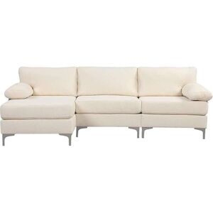 Canapé d'angle 4/5 places GALWAY velours beige Craquez pour notre canapé d'angle en velours beige Galway. Avec sa grande largeur de 260cm, il est conçu pour accueillir agréablement entre quatre et cinq personnes. Son revêtement en velours et son design soigneusement pensé transforment votre salon en un espace de détente somptueux. Ses grandes épaisseurs de coussins d'assise et de dossiers vous permettront d'être confortablement installé pour passer de bons moments avec vos proches. Optez pour le confort et l'élégance suprêmes avec ce canapé d'angle en velours beige. Caractéristiques techniques Nombre de places : 4/5 Couleur : beige Revêtement : tissu en velours Piètement : métal et plastique Structure : cadre en bois avec tissu Assise : polyester 0.9kg et suspensions ressorts zig zag Poids maximum supporté : 250kg Convertible : non Angle modulable : non Angle sur le côté gauche Entretien Nettoyage facile à l’aide d’un chiffon humide Dimensions Dimension totale : 262 x 132 x 77 cm Poids total : 63.5 kg Hauteur pied : 13 cm Hauteur assise : 48 cm Profondeur assise : 49 cm Epaisseur de l’assise : 35 cm Hauteur du dossier : 40 cm Epaisseur du dossier : 33 cm Dimensions de l’accoudoir : 61 x 23 cm Conditionnement Le produit est conditionné dans 2 colis de : 1735 x 765 x 365 mm / 38 kg 935 x 1335 x 365 mm / 35 kg Montage facile une notice est fournie. * Garantie 2 ans