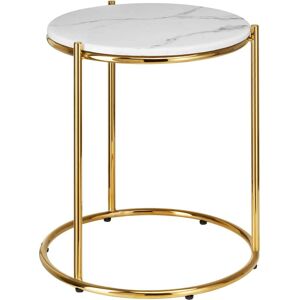 Tectake Table d'appoint plateau en marbre et structure en acier blanc/doré Or 43x50x43cm