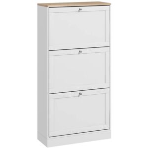 Description:Doté de trois tiroirs rabattables, ce meuble à chaussures HOMCOM peut accueillir jusqu'à 18 paires de chaussures, un espace spacieux pour une utilisation individuelle ou partagée. Chaque tiroir est doté d'une étagère réglable à deux niveaux pour s'adapter facilement à des chaussures de différentes tailles. Le meuble est doté d'un système anti-basculement pour une fixation murale en toute sécurité ; sa conception étroite est idéale pour les petits espaces.caractéristique:● Meuble à chaussures au look épuré et moderne qui se mariera très facilement à tous les styles de déco; ● Cette armoire à chaussures d'entrée en panneaux de particules, gage de robustesse, durabilité et facile d'entretien; ● Peut contenir jusqu'à 18 paires de chaussures dans trois tiroirs à portes abattants; ● Étagère réglable à deux niveaux dans chaque tiroir, pour s'adapter à différentes pointures de chaussures; ● Système anti-basculement du meuble d'entrée pour assurer la sécurité; ● Étagère supérieure pour accueillir des objets de déco; ● Montage facile et rapide à l'aide du manuel d'assemblage illustré fourni;Spécification:● Couleur principale : blanc; ● Matériau : panneau de particules; ● Dim. totales : 60l x 23,5P x 115H cm; ● Dim. rangement tiroir : 54,5l x 28,5P x 24H cm (chaque niveau); ● Peut contenir jusqu'à : 18 paires de chaussures; ● Charge max. recommandée : 40 kg (au total), 10 kg (chaque tiroir/plateau); ● Réf. : 837-399V80WT;contenu du colis:● 1 x Meuble à Chaussures; ● 1 x Notice de Montage;