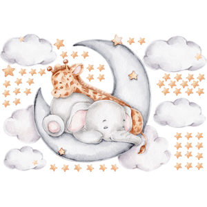 Des stickers animaux pour votre déco ! Avec les stickers muraux animaux multicolore et ce Stickers animaux bébé éléphant et girafe rêveurs, vous vous approprierez enfin votre intérieur ! Dimensions des stickers animaux : Ce sticker déco chambre enfant se compose de : 1 sticker bébés éléphant et gir
