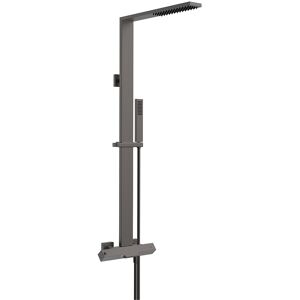Colonne de douche avec robinet thermostatique SHOWERA_Metal Équipez votre baignoire ou votre cabine de douche avec cette colonne de douche gris anthracite en acier inoxydable, pour donner à votre salle de bain un style très tendance. Imaginez-vous sous son dôme de pluie ultra-fin ou sous sa douchette, dont le support est réglable en hauteur, pour une séance de douche parfaitement délassante. Très pratique, cette colonne de douche et son robinet thermostatique vous permette de régelr la température de l'eau de façon optimale en fonction de vos habitudes et de vos besoins. Fixez facilement cette colonne de douche grise anthracite au mur, qu'il s'agisse d'une baignoire ou d'une douche, et profitez d'un bon moment de relaxation sous l'eau chaude grâce au mitigeur thermostatique en laiton massif. Dimensions de la coque de la colonne de douche avec robinet thermostatique : 31,3 x 57,5 x 105 cm. Entraxe : 15cm Le + : Son dôme de pluie très fin ------------------ Garantie 12 mois. Les photos présentes sur notre site sont interdites à la reproduction à des fins commerciales sauf accord avec la société DISTRIBAIN.