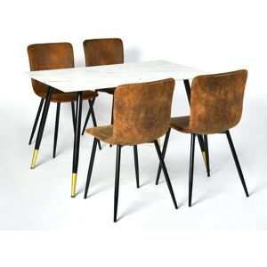 Ensemble table blanche effet marbre et 4 chaises tissu beige WHALEN WHITE MARBLE TABLE 120 KD + MAYFAIR BEIGE*2Vous rêvez d'une salle à manger chic et retro dans l'air du temps, où convivialité rime avec goût ? Ajoutez une touche charme et des couleurs contrastes à votre salle à manger avec notre ensemble table et 4 chaises scandinaves couleur beige. Le table de 120 cm est idéale pour les réunions en famille ou entre amis. Selon vos envies, misez sur le contraste des couleurs et des matières : cet ensemble table et chaises est équipé de pieds en métal noir pour assurer une bonne stabilité à l'ensemble. Style moderne et élégante : Cette table à manger blanche présente un design effet marbre et pieds noir, avec les chaises look élégante et leur tissu doux au toucher, ensemble cette combination raffinée et ses lignes épurées ajouter une touche de charme à votre espace de vie.Pour 4 personnes : Grâce à son large plateau de la table 120*70 cm, la table offre de l'espace pour 4 personnes pour partager un repas à plusieurs ou discuter autour d'un verre. La table se nettoie facilement avec un chiffon humide.Confort de la chaise : Le dossier est conçu avec une courbure légère pour s'adapter parfaitement à votre dos, offrant ainsi un confort optimal, même après des heures d'utilisation.Polyvalence : Les chaises de salle à manger sont polyvalentes et peuvent être utilisées dans une variété de situations, que ce soit pour partager un repas copieux en famille ou entre amis, travailler au bureau ou simplement se détendre en lisant un livre. Leur conception ergonomique et leur confort en font un choix idéal pour toutes les occasions.Montage : La table et les chaises sont faciles à assembler et les outils nécessaires ainsi que les instructions sont inclus pour un montage rapide et sans effort. Des embouts en caoutchouc anti-bruit et résistant à l'usure sont fixés aux pieds pour protéger votre sol des rayures. Caractéristiques :Table :Plateau : en MDF, PVC texturé effet marbre blancPied : Métal noirDimensions du produit : 120*70*75cmPoids net/brut : 18.2/20.6 kgDimensions du colis : 86*66*20 cm Chaises :Matériel : tissu et métalDimensions du produit :56*53*76.5cmDimensions du colis 2 colis :57*46*48 cm57*46*48 cmPoids net/brut 12.5/13.9 kgGarantie :2 ans (voir politique de garantie)Remarque : ce produit est divisé en 3 colis, veuillez vous assurer d'avoir reçu les 3 colis avant l'assemblage !