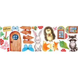 Des stickers animaux pour votre déco ! Avec les stickers muraux animaux multicolore et ce Stickers animaux habitants des bois, vous vous approprierez enfin votre intérieur ! Dimension du sticker : Une planche de 20 x 60 cm, le papillon rose en bas à gauche mesure 6,8 x 6,5 cm et le raton laveur en