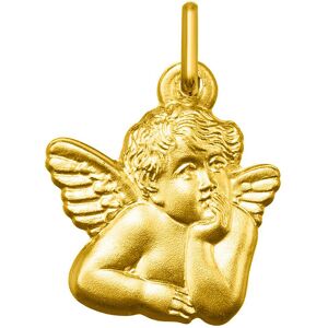 Cette jolie angelette attend le moment de s’accrocher au cou d’une petite fille qui sera fière de la porter. Ce ravissant pendentif enfant à offrir comme médaille de baptême est la représentation naïve en or jaune 18 carats d’une créature céleste. Un cœur entre les mains, deux petites ailes dans le