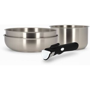 Notre batterie de cuisine est compatible tous feux dont induction. Le lot comprend 4 articles de cuisson en aluminium composé d'1 casserole (Ø18 cm), de 2 poêles (Ø24/28 cm) ainsi que d'1 poignée amovible en bakélite pour un gain de place dans la cuisine. En aluminium 2.5 mm avec fond induction renforcé en acier inoxydable Fonctionne avec la poignée amovible en bakélite et silicone Cette poêle est garantie contact alimentaire et lave-vaisselle Revêtement : PPG Xylan 2 couches anti-adhésive Cette poêle peut être utilisée sur tous feux dont inductionCompatible lave-vaisselle